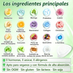 CareUplift® Moringa · Berberina × NAD+ 10-en-1 Advanced Nano Microneedle Patch fue desarrollado a lo largo de más de 20 años de investigación por un equipo multidisciplinario de más de 30 expertos. Cada parche incorpora una arquitectura de microneedles ultrafinos, de aproximadamente una séptima parte del grosor de un cabello humano, diseñada para garantizar una aplicación suave y prácticamente indolora.La formulación contiene compuestos bioactivos naturales altamente concentrados, hasta 20 veces superiores a los niveles convencionales del mercado, incluidos moringa y berberina, que actúan de forma sinérgica para apoyar respuestas glucémicas saludables, la regulación del apetito y el metabolismo de los lípidos, promoviendo así un control del peso gradual y sostenible.Enriquecido con NAD+, el parche también apoya la firmeza de la piel y la resiliencia estructural durante las fluctuaciones del peso corporal, ayudando a mantener una apariencia estilizada sin comprometer la comodidad ni la estética. Componentes adicionales de alta eficacia contribuyen al apoyo de la función inmunológica, la salud digestiva, el equilibrio intestinal, la salud femenina, los niveles diarios de energía y la reducción de la fatiga, promoviendo en conjunto un estado fisiológico más juvenil y resistente desde el interior.Fabricado en instalaciones que cumplen con los estándares de calidad de EE. UU. y la UE, esta solución sin agujas y basada en la ciencia ofrece un enfoque seguro y completo para un control del peso eficaz y la salud metabólica a largo plazo, diseñado para trabajar en armonía con el cuerpo y no en su contra.